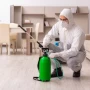 4. يشرع الفريق في الانتشار وتطبيق المبيدات ورشها في كامل مساحة المنزل.